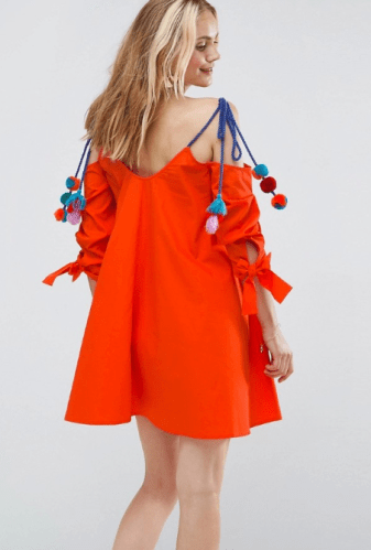 When you’re wearing the Cold Shoulder Multi-Color Pom Straps Sun Dress, you’re definitely bringing the fun! The dress makes you want to twirl around and you can’t help but smile while wearing it!